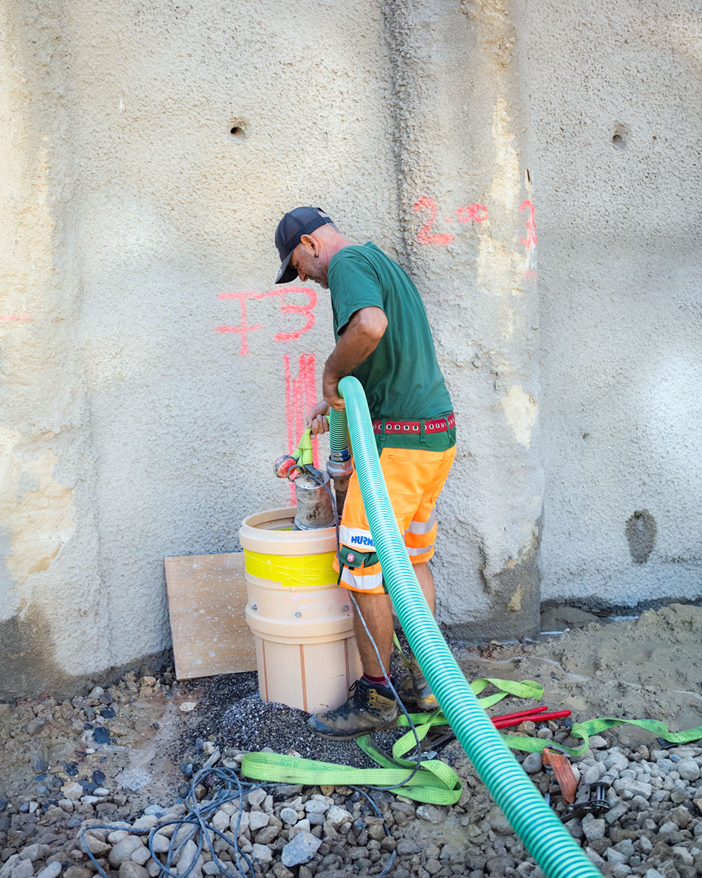 Das sich das Projekt m Grundwasserbereich befindet, musste dieses kontinuierlich abgepumpt, in Becken behandelt und umweltgerecht zurückgeführt werden. Sechs Pumpen übernahmen diese Aufgabe.